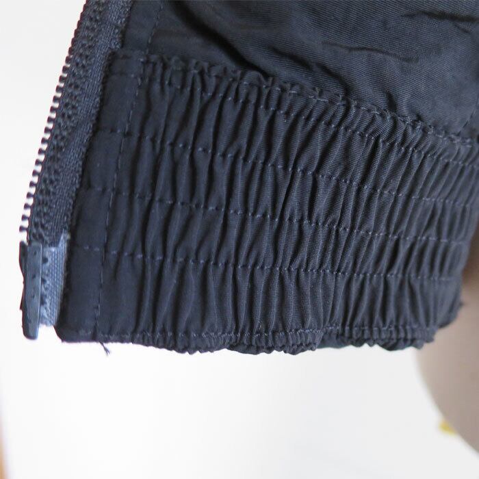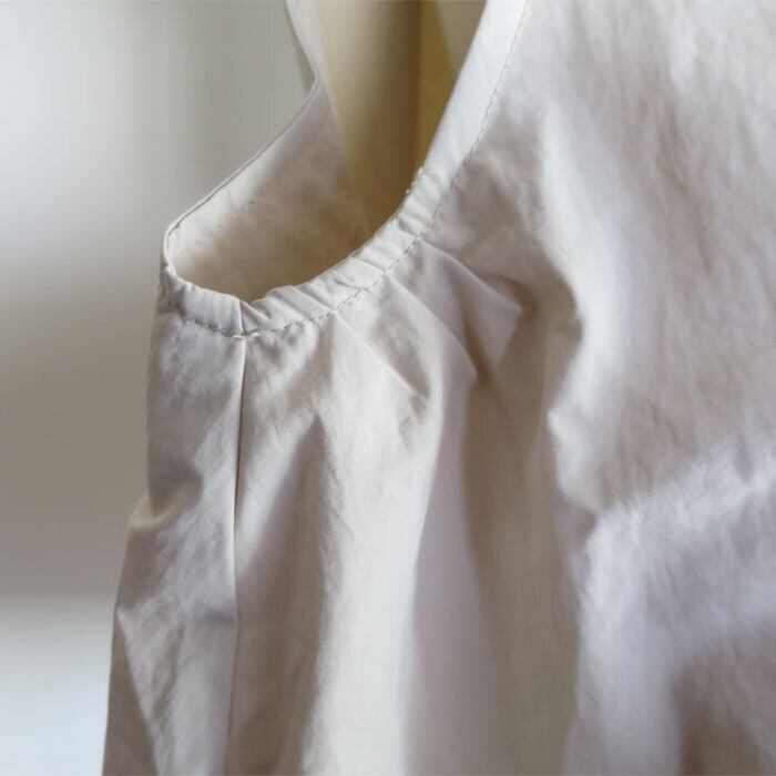 裾はゴムでギャザーを寄せてくるんと内側に巻き込んだバルーンシルエットに。