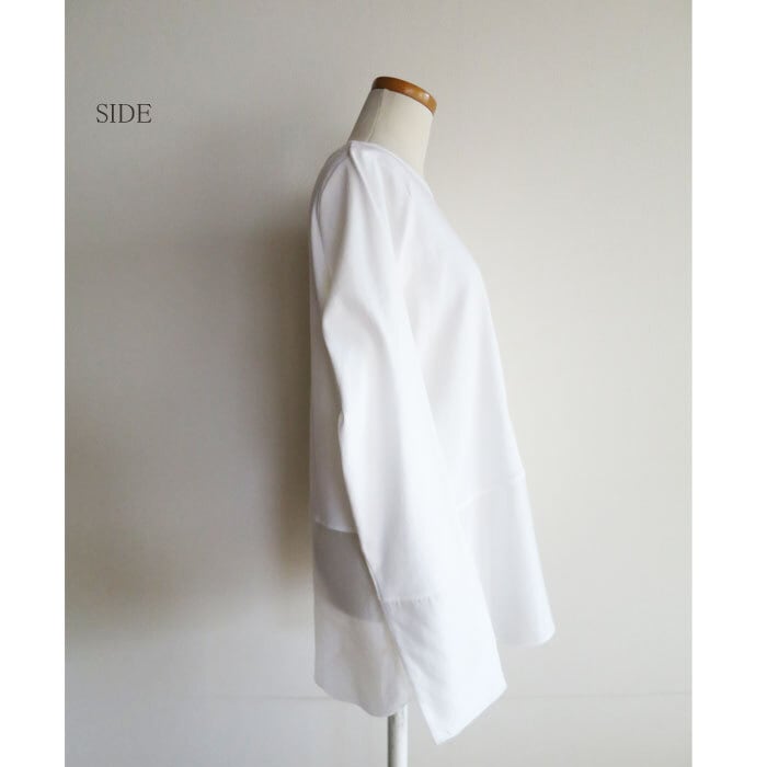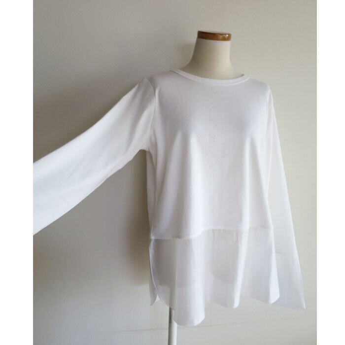 PU混の伸びが良く心地よいフライス生地にテンセルベースの適度な光沢とシアー感のある布帛生地で袖と裾を切り替えたインナーカットソーです。