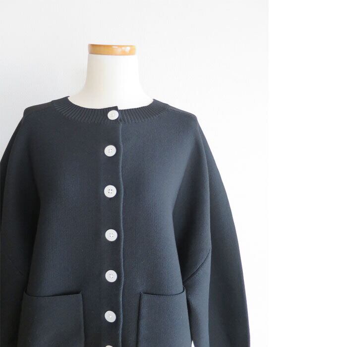 ゆったりとしたデザインのカーディガン。ラグランスリーブの特徴により、動きやすさとリラックス感を両立。