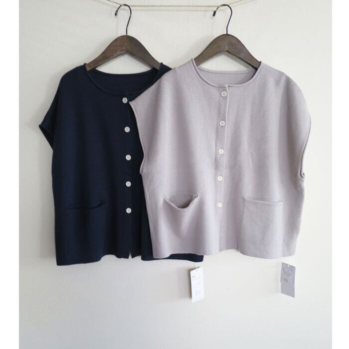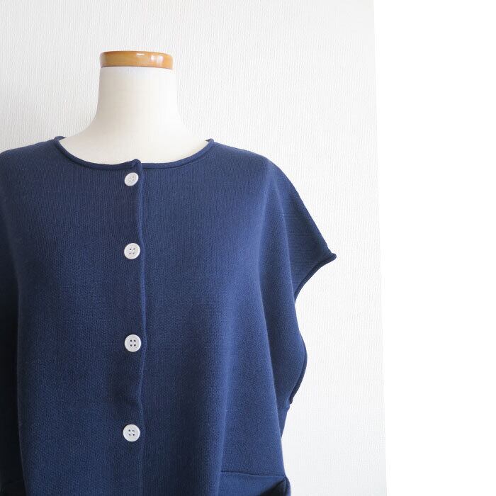 SO 両面ジャガードニット クールネック 前開きベストです。