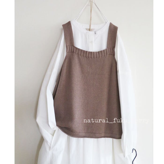 梅春~春にかけて着るのにちょうどいい、ちょっと太めのリネンコットンの糸を使用した2WAY大人も着れるほんのりAラインキャミベストです。