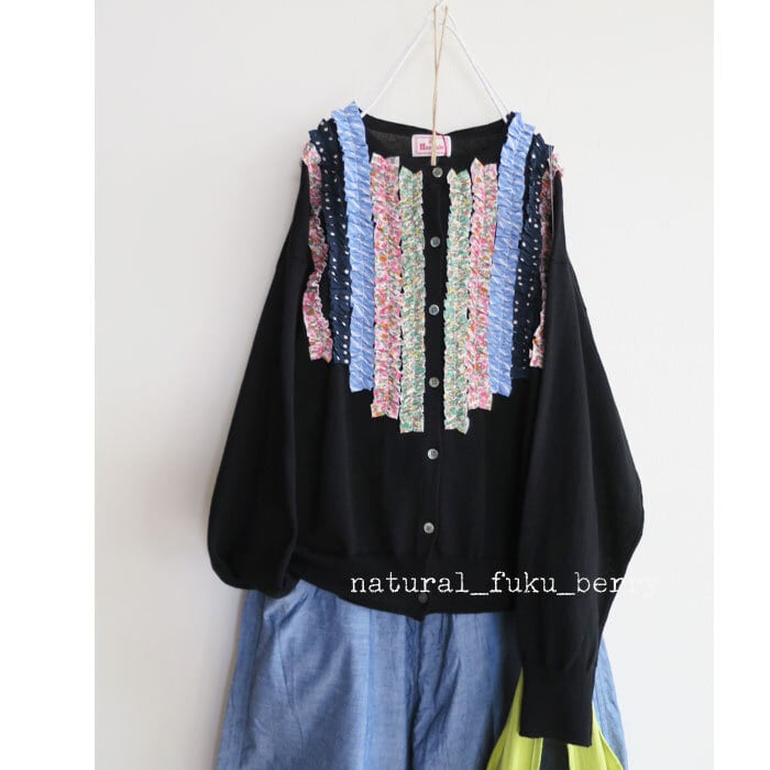 mao made マオメイド リネンコットン ふりふり フリルカーディガン ドット ミックス ニットカーディガン ナチュラル 611138 通販 8218