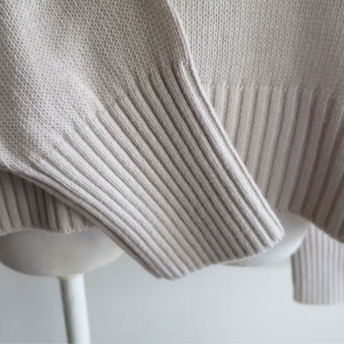 梅春~春にかけて着るのにちょうどいい、ちょっと太めのリネンコットンの糸を使用したミドルゲージの気持ちちょい短めフード付きプルオーバーです。