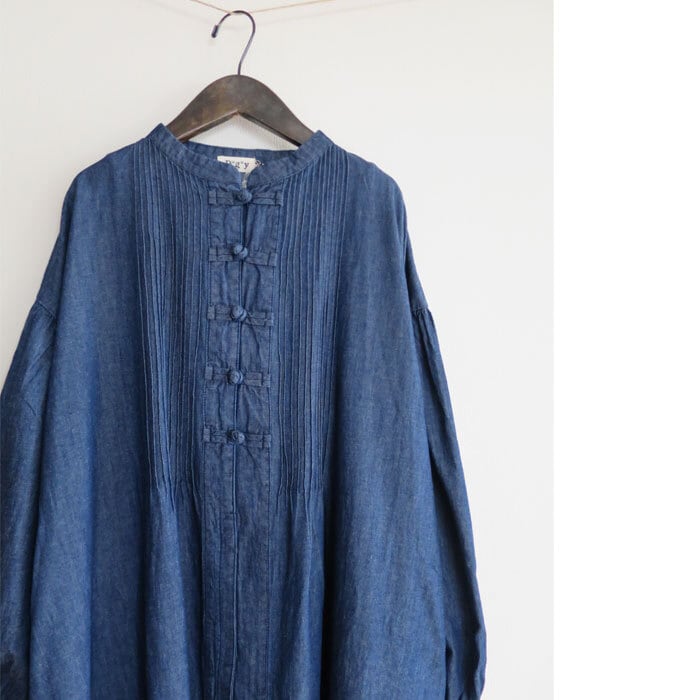 再入荷 Dgy ディージーワイ コットンリネン デニムワンピース チャイナ釦 ピンタック 綿麻 M D9737 通販 8223