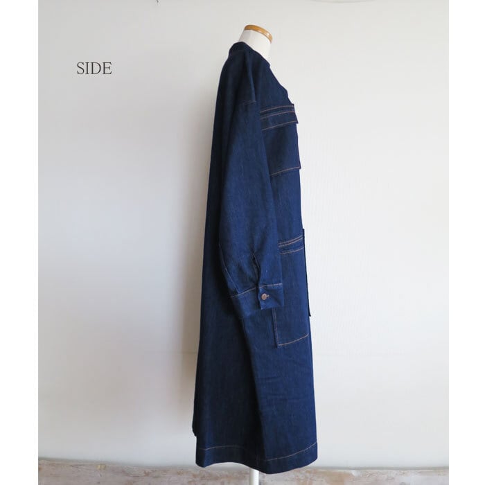 綿100%のデニム生地を使用した、カジュアルな風合いが魅力のコート。