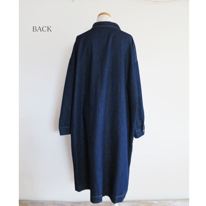 デニム特有のハリ感があります。カジュアルな日常着としてはもちろん、ちょっとした外出にもお勧めの一着です。