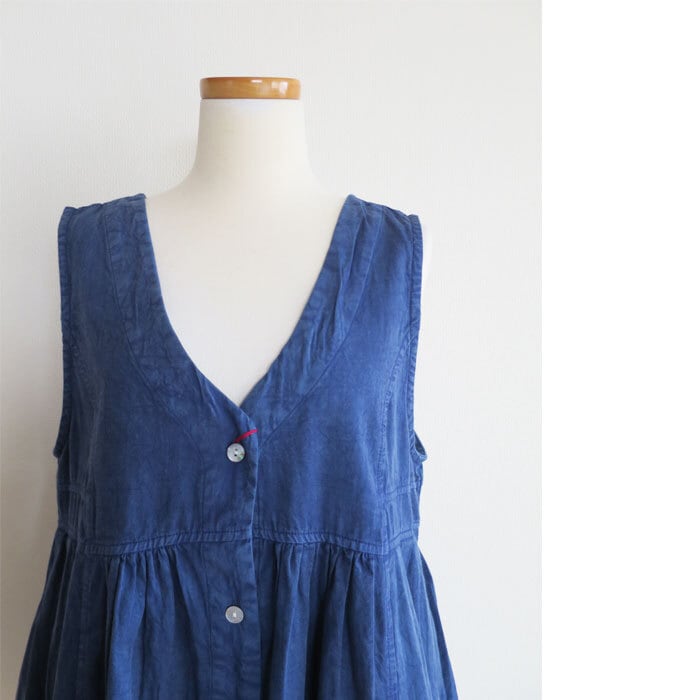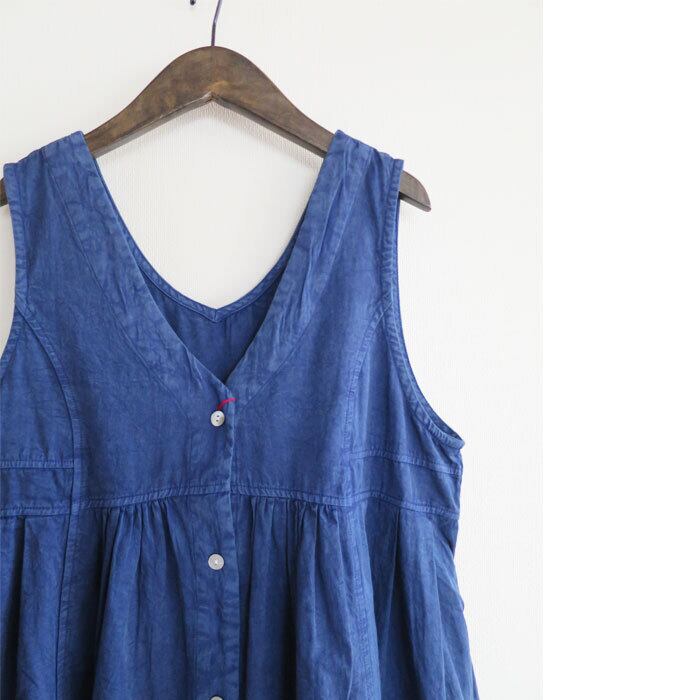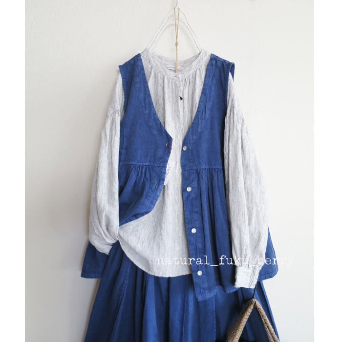 YARRA ヤラ インディゴ エンザイム 2WAY ベスト 切替ギャザー インディゴ染め 前開き セットアップ 1618-233 通販 8220