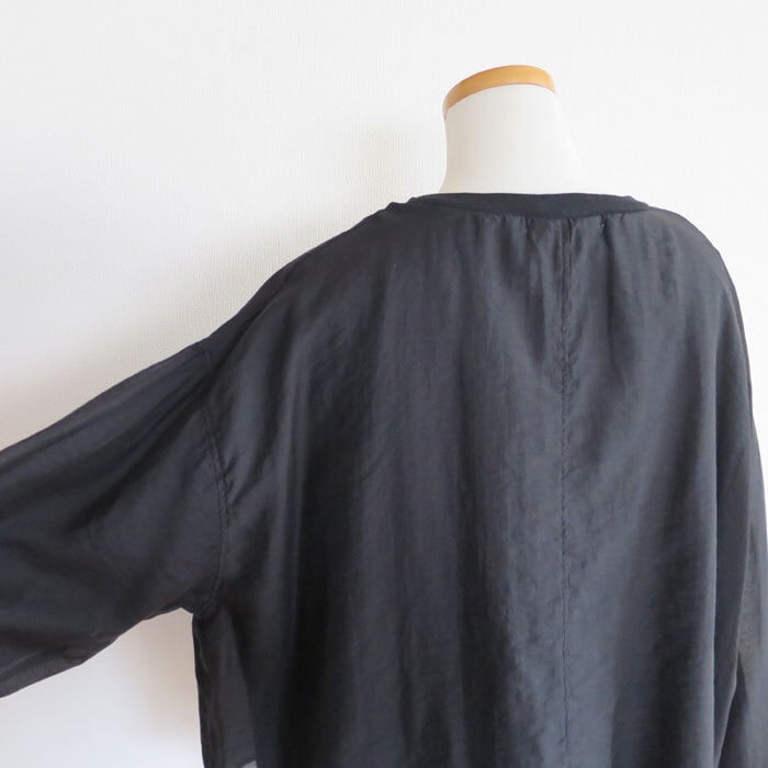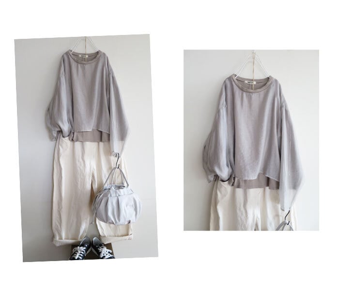 柔らかで薄手のコットン天竺と透け感の軽やかなツイル生地を掛け合わせています。