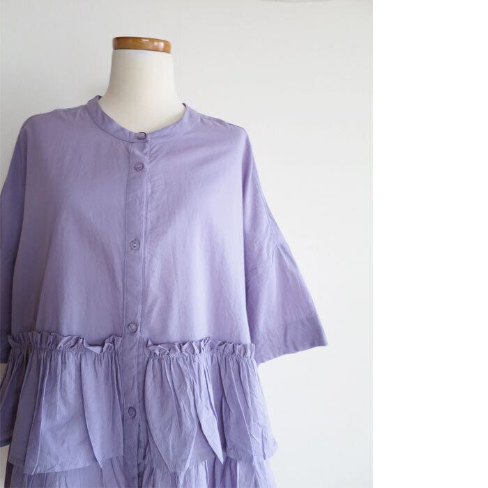 綿100%の素材を使用した重なったティアードデザインのブラウスで、ふんわりとしたシルエットが女性らしい印象を与えます。