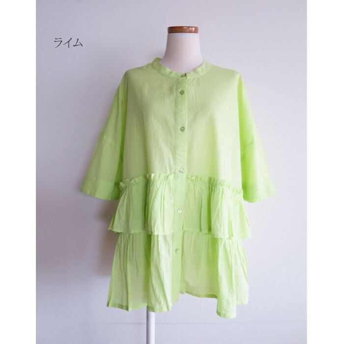 涼し気なキャンブリック生地を使用した 二段フリル インド綿切替ブラウスです。