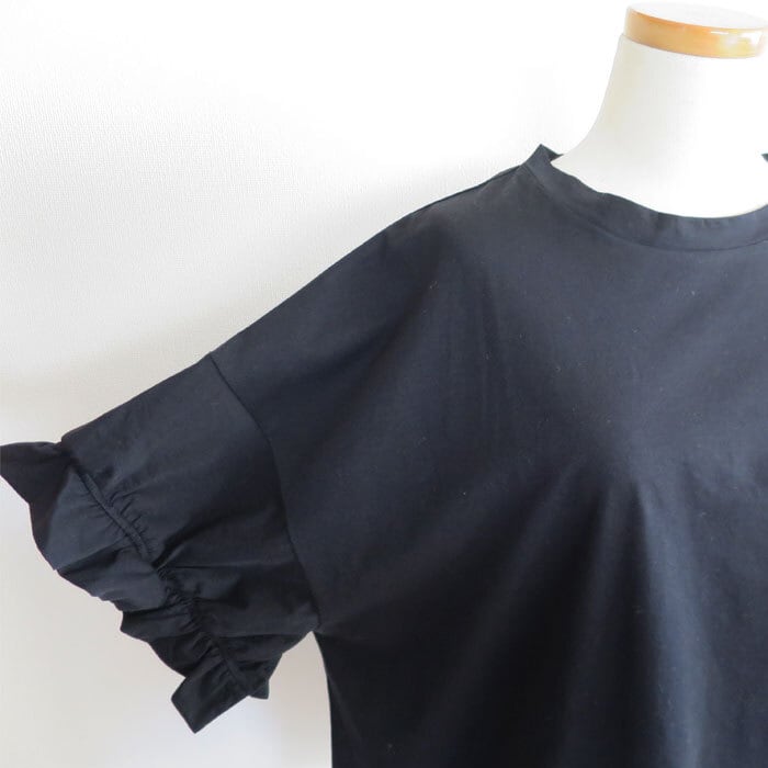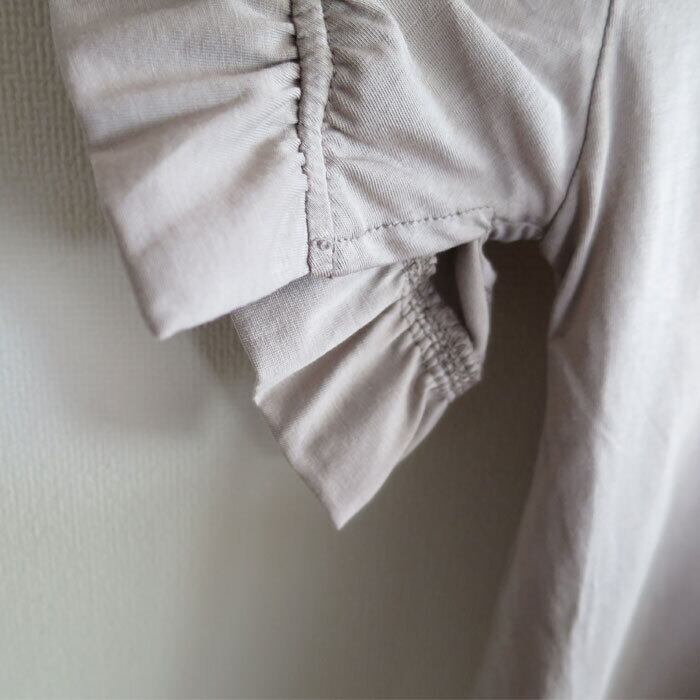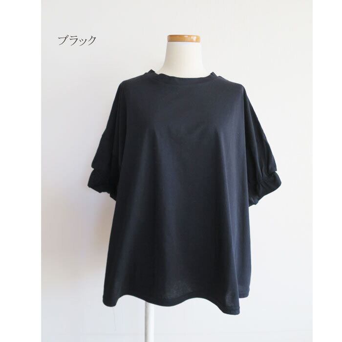 ギャザーの入ったスリーブデザインが魅力的なプルオーバーTシャツです。