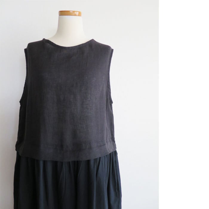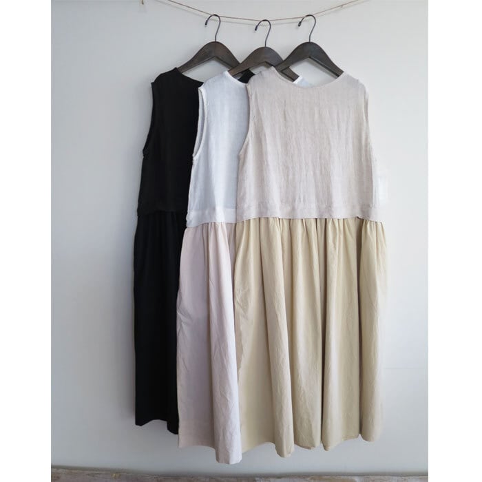 SO 麻と綿を組み合わせたノースリーブドッキングワンピースです。