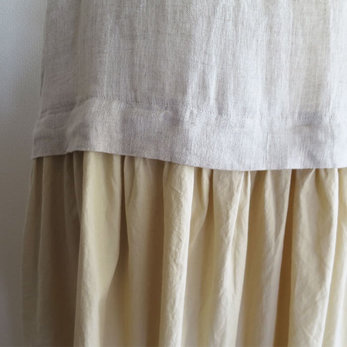 トップ部分はさらりとした麻素材、スカート部分は通気性の良い綿で仕立てられており、夏の暑い日でも快適に過ごせます。