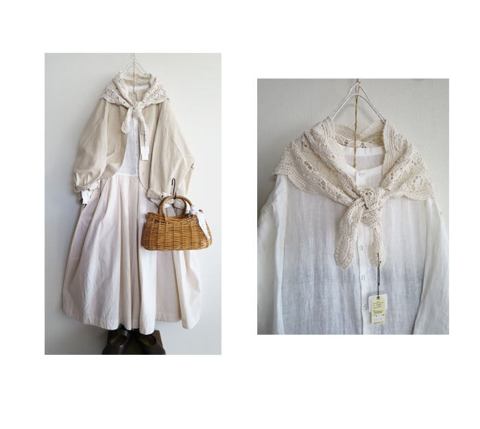 ガーリーな雰囲気を持ちつつ、ナチュラルなデザインが日常のコーディネートにぴったりなアイテムです。柔らかなレース素材で仕立てられており、軽やかで肌触りも快適。大判サイズの三角形シルエットは、様々なスタイルに合わせやすく、肩から羽織るだけで一気に女性らしさを引き立てます。春夏のシーズンにぴったりのアイテムです。