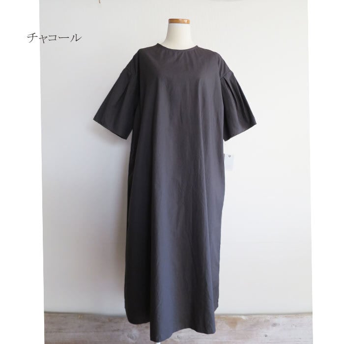 ina コットン タイプライター ナチュラリードライ パフスリーブ ワンピースです。