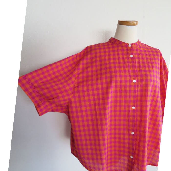 fu-dueka コットンギンガムチェック 6分丈シャツです。