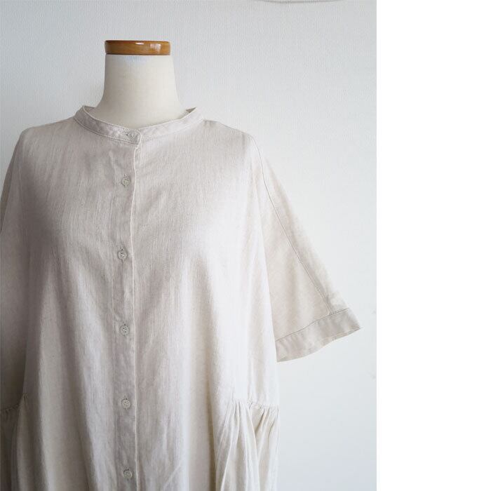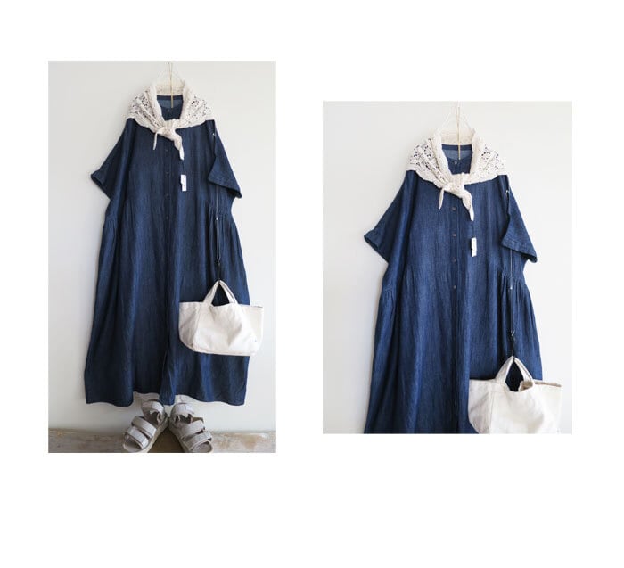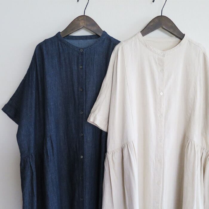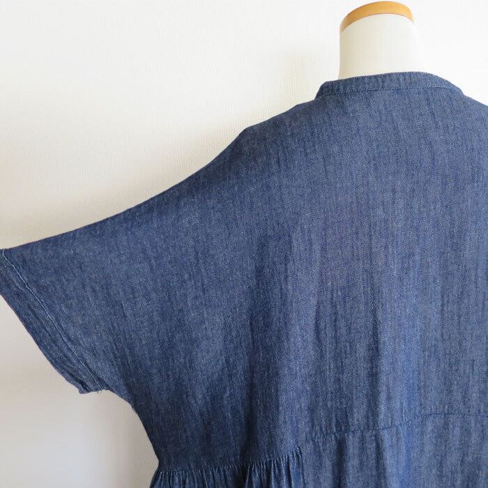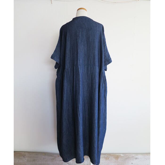 ista-ire 綿麻 甘織デニム サイドギャザー ワンピースです。