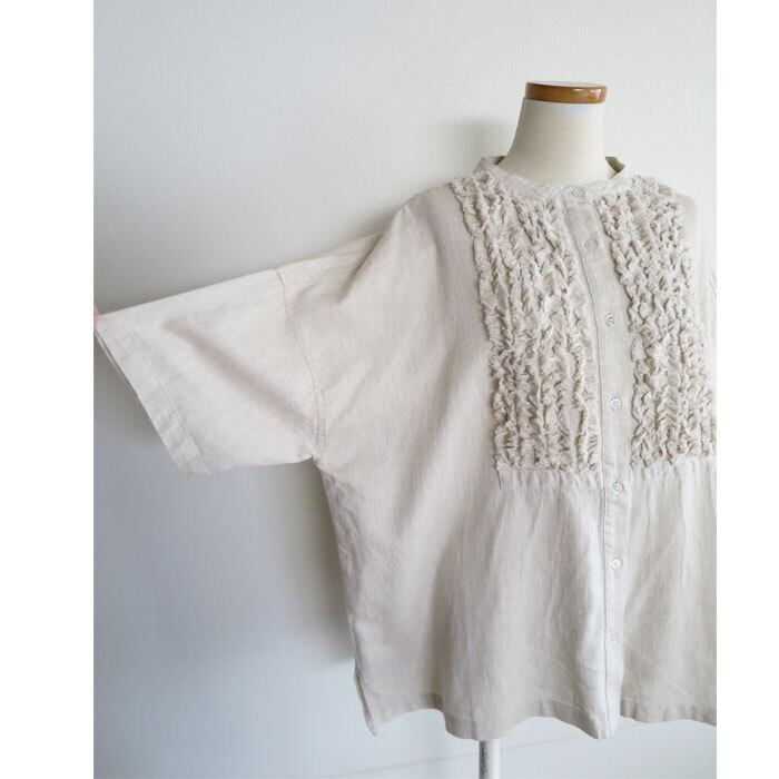 ista-ire イスタイーレ 綿麻 甘織デニム フリンジ ブラウス ナチュラル コットンリネン 4601-6620 通販 8268