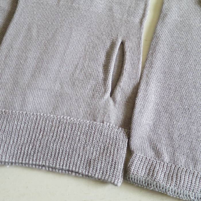 親指を通す穴は無縫製でやさしい肌当たりです。
