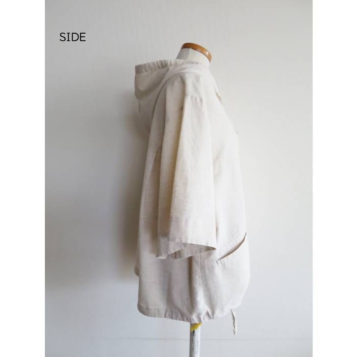コットンリネン素材を使用したナチュラルで軽やかな着心地のフーディーシャツ。