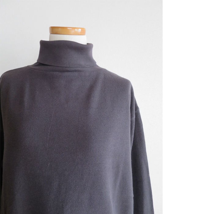 綿麻のワッフル地タートルネック長袖カットソーです。