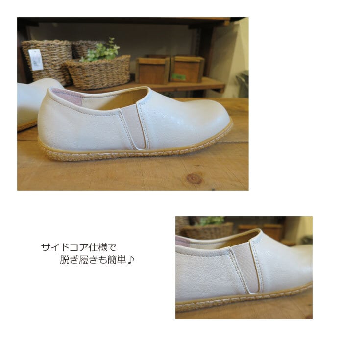 joy wolker plus コロンと丸い フラットシューズ サイドコア フェイクレザー カジュアル ナチュラル エルツ CA201 5508