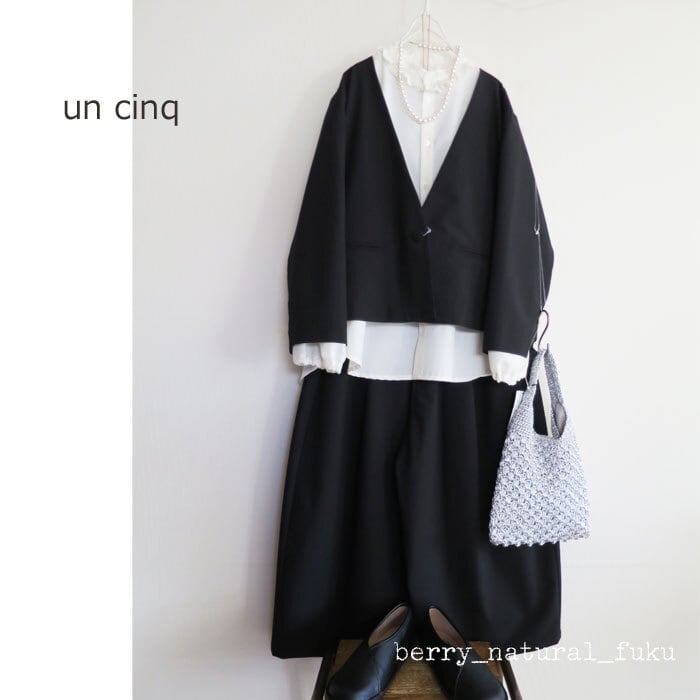 un cinq アンサンク Tropical V-neck jacket & Tropical Wide Tuck Easy Pants セットアップ ブラック オケージョン セレモニー パンツスーツ ハレの日 u25-07 u25-08 通販 7586
