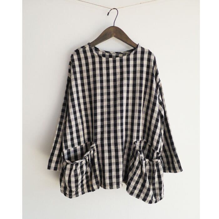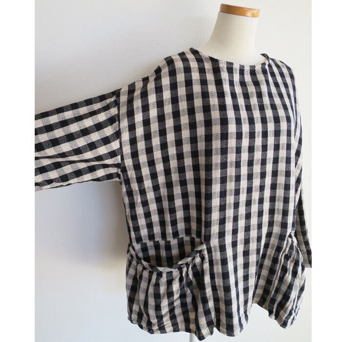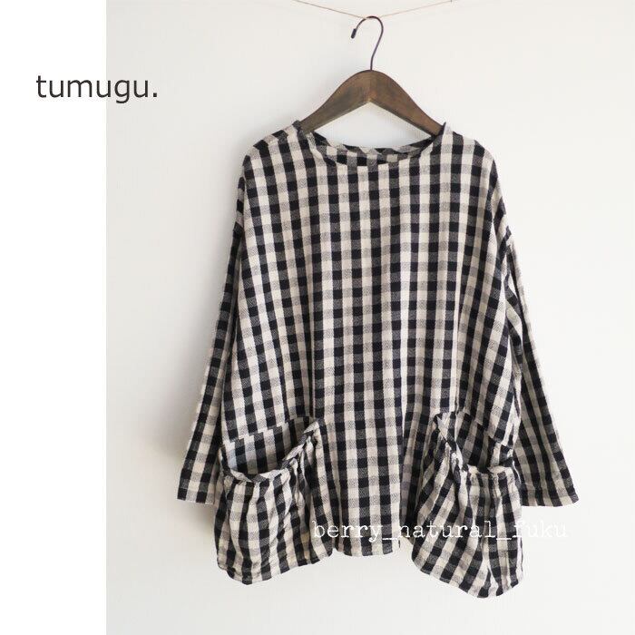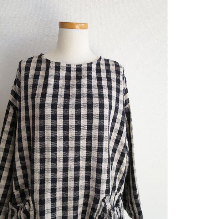 tumugu ツムグ ヘリンボン ギンガムチェック プルオーバー 切替ギャザー ワイド 日本製 TB24434 通販 7608